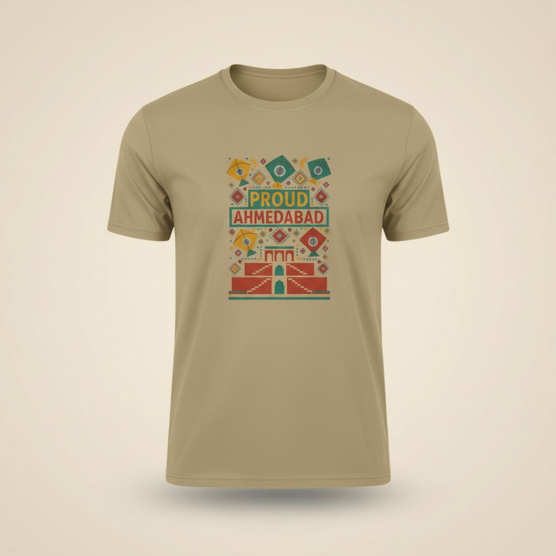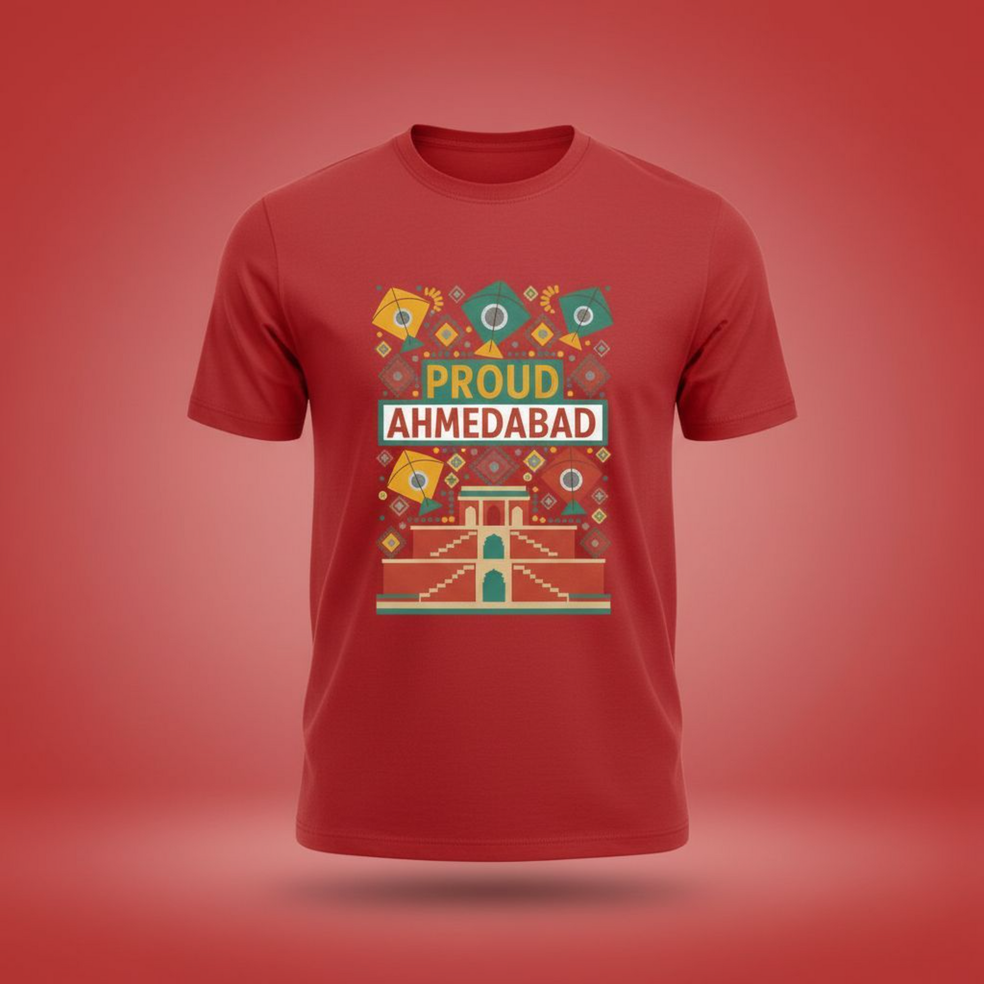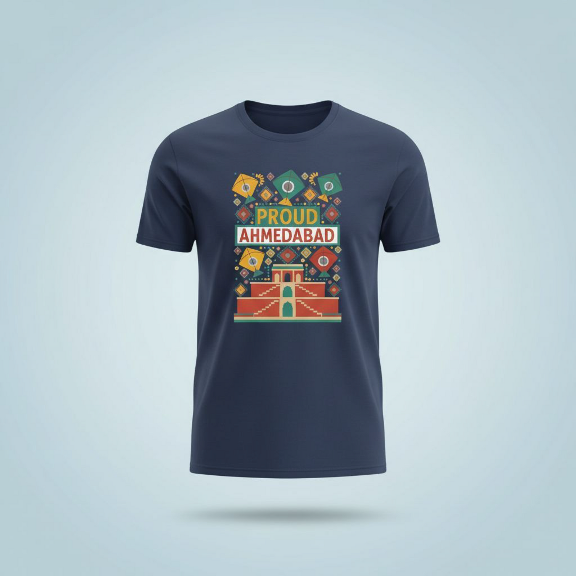 Inspired by the city’s timeless charm — from kites dancing in the sky to its stunning stepwells and bold street colors — this tee captures the soul of Ahmedabad in every thread.